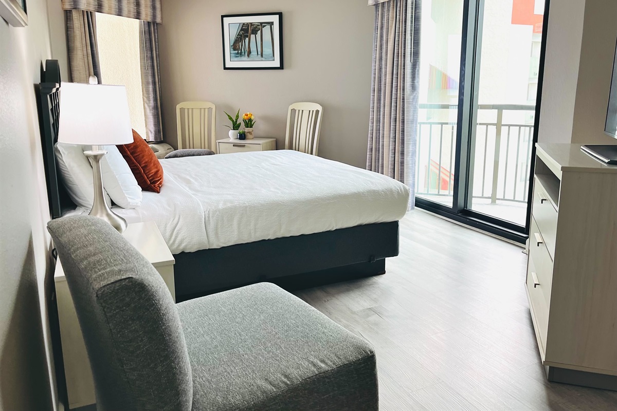 1 Bedroom • 1 Bathroom 1 Bath • Sleeps 1-6Escape to the Patricia Grand Resort for a memorable retreat with your loved ones! Our private 1-bedroom ocean-view suite on the 18th floor is ideal for families, friends, or business travelers seeking a fun yet relaxing escape. Perfectly located, Patricia Grand puts you just steps from the best of Myrtle Beach, ensuring your vacation is filled with excitement and ease.